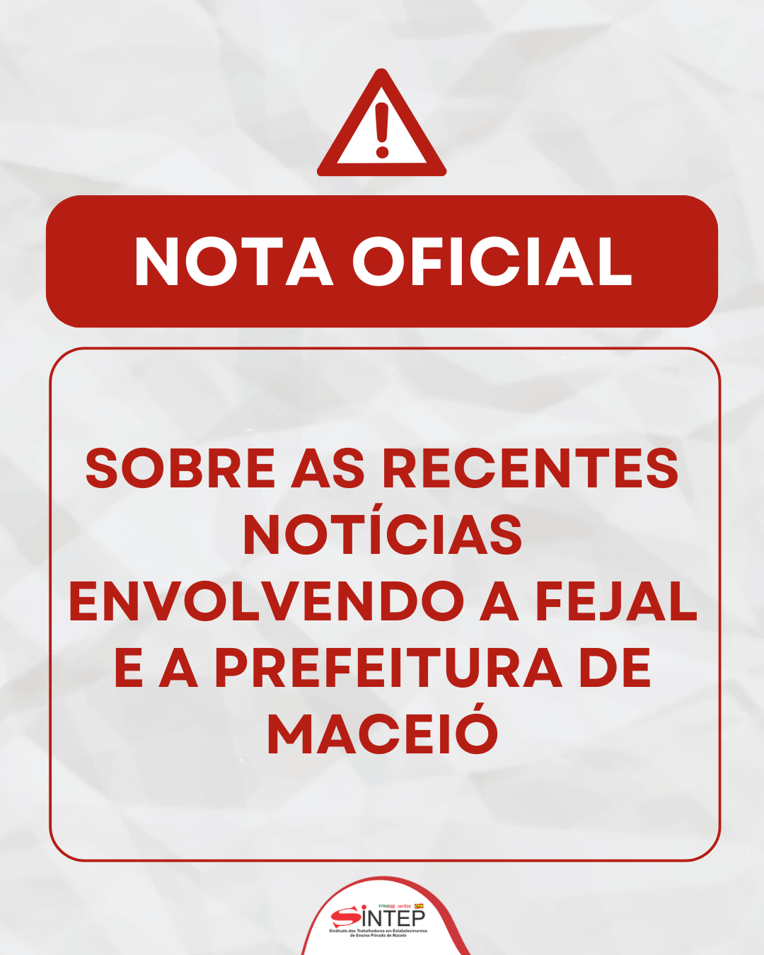 O Sintep-AL (Sindicato dos Trabalhadores em Estabelecimento de Ensino Privado de Alagoas) vem se manifestar sobre as recentes notícias envolvendo a Fejal (Fundação Jaime de Altavila), mantenedora do Cesmac, e a Prefeitura de Maceió que têm preocupado os trabalhadores administrativos, categoria representada por nosso sindicato.